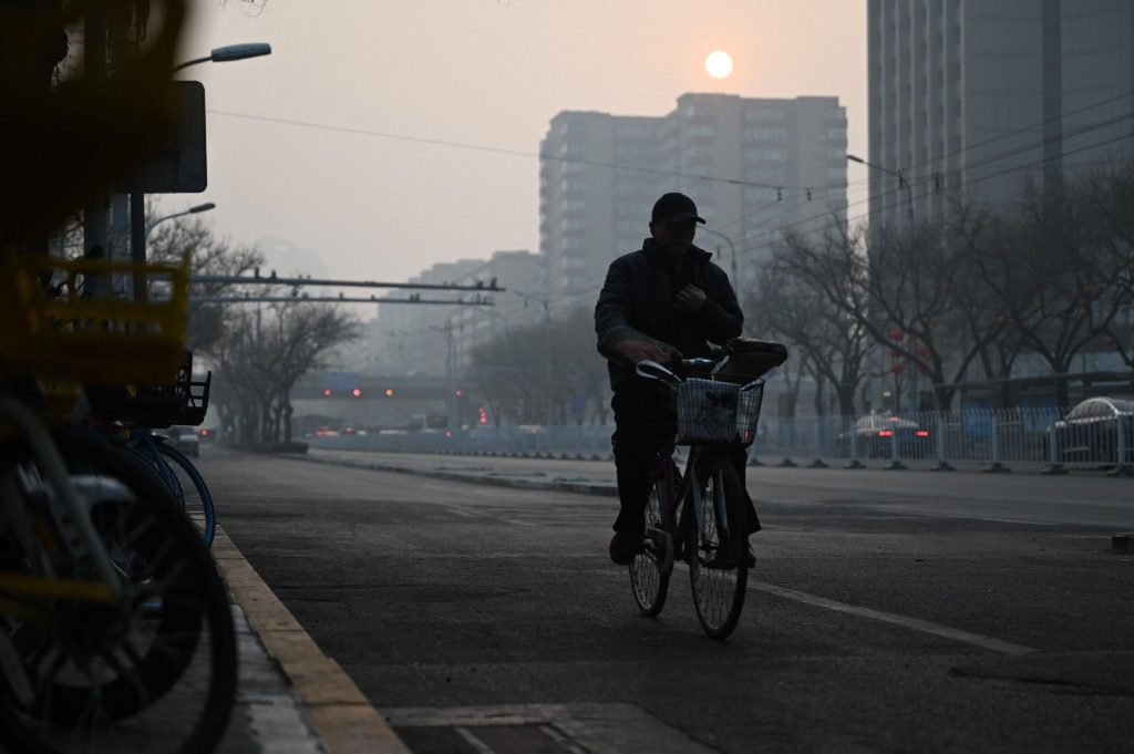 Heavy smog blankets Beijing on 9 March 2025, with PM2.5 levels reaching unhealthy levels.  Photo: Johannes Neudecker/dpa/Alamy Live News.