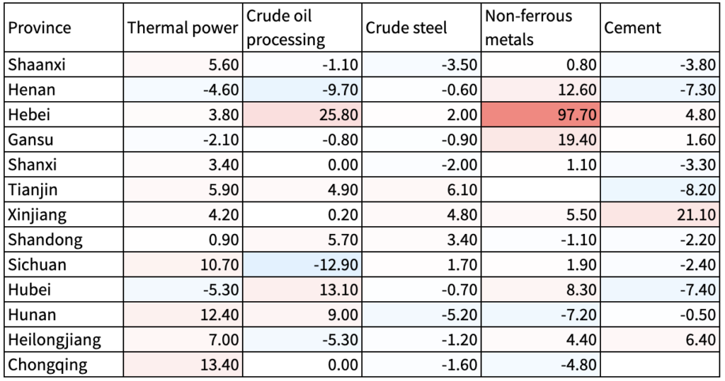 Table 1. Changes in output in highly energy & carbon intensive industries from January to October 2023, year-on-year