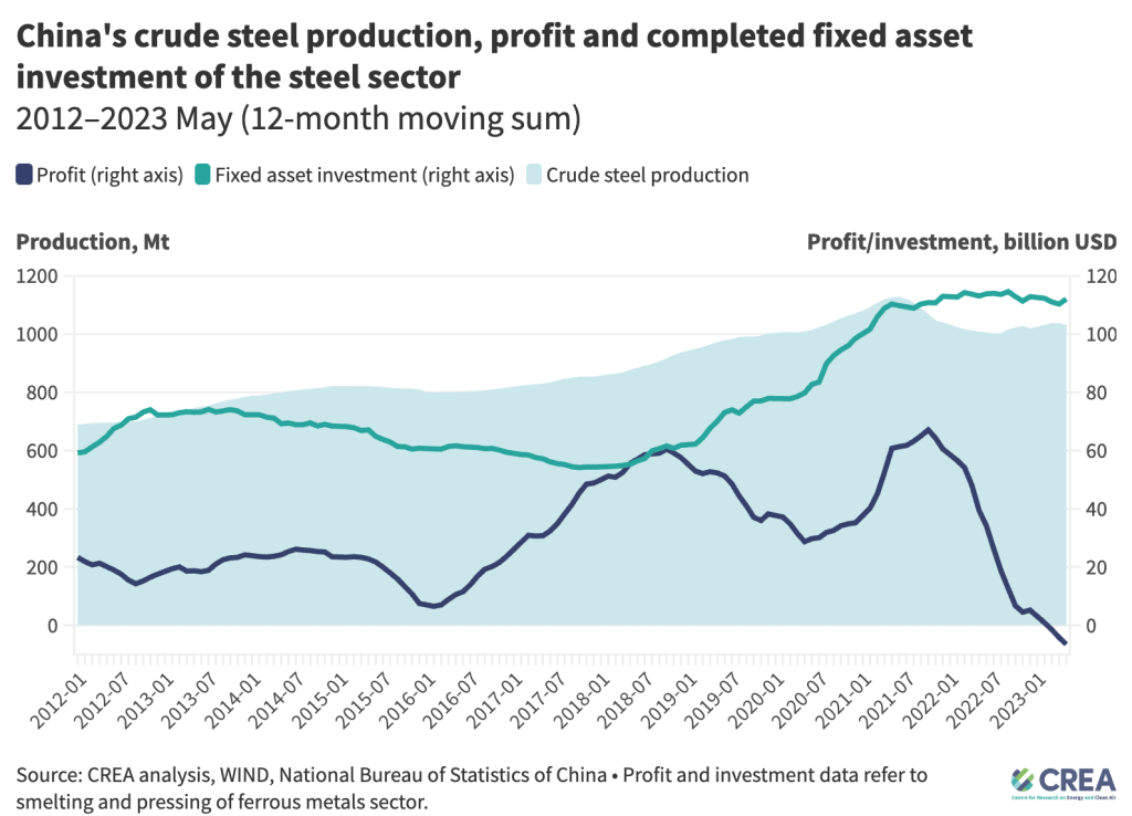 The Center for Research on Energy and Clean Air (CREA)’s latest briefing on the steel sector in China reveals that China’s crude steel output has declined since 2021 due to output control by the government and the decline in downstream demand. However, new investments in iron and steelmaking capacity have so far not adjusted to the new reality. The expansion of the Chinese steel industry demonstrates a close correlation with the nation’s economic development. Excessive investments have persistently inundated the industry, transforming the customary cyclical and short-term overcapacity situation into a protracted and persistent overcapacity issue, referred to as structural overcapacity.