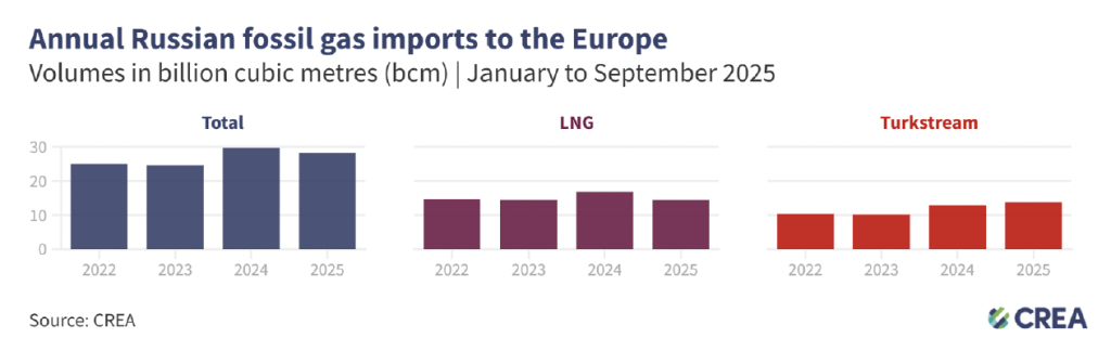 | Russian gas to Europe in the first nine months of 2025: LNG slumps, TurkStream rises |