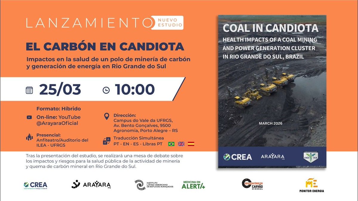 @arayaraoficial 🇧🇷⚕️CREA & ARAYARA's health impact assessment (HIA) report on the Candiota coal mining and power generation cluster in Rio Grande do Sul, Brazil is now available in English & Portuguese: