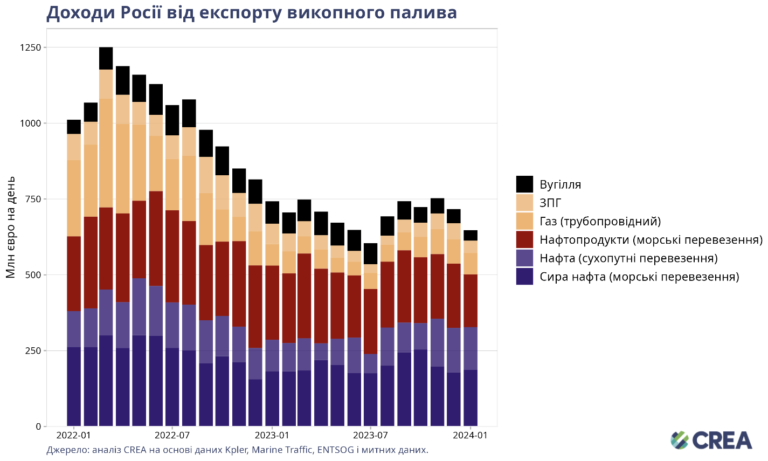 Січень 2024 — Щомісячний аналіз російського експорту викопного палива та відповідних санкцій 14 Лютого 2024