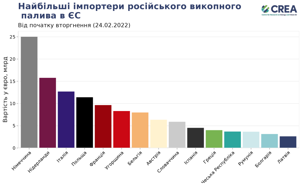 До п’ятірки найбільших країн‑імпортерів ЄС минулого тижня увійшли Німеччина, Словаччина, Польща, Греція та Чехія.