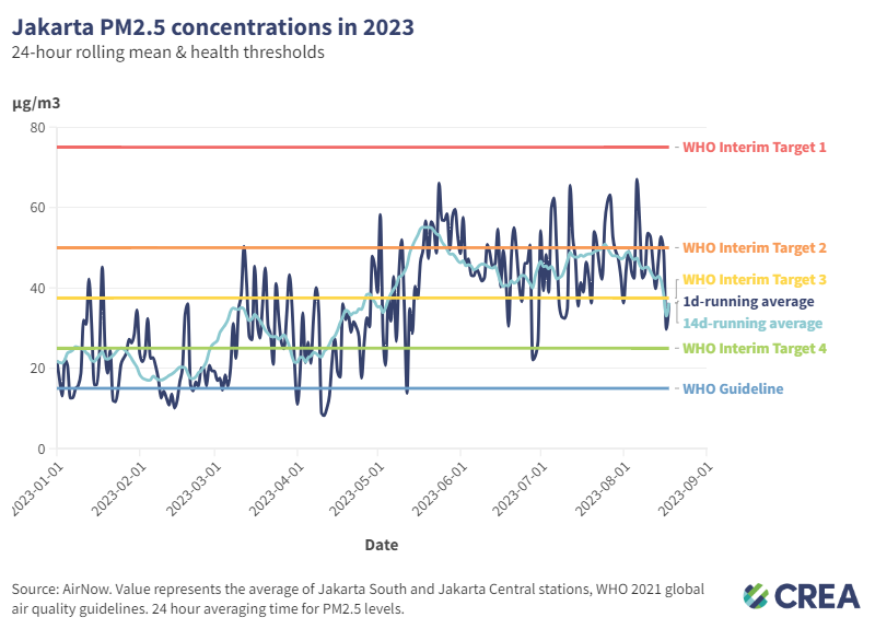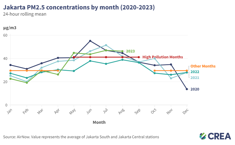 Source: AirNow. Value represents the average of Jakarta South and Jakarta Central stations