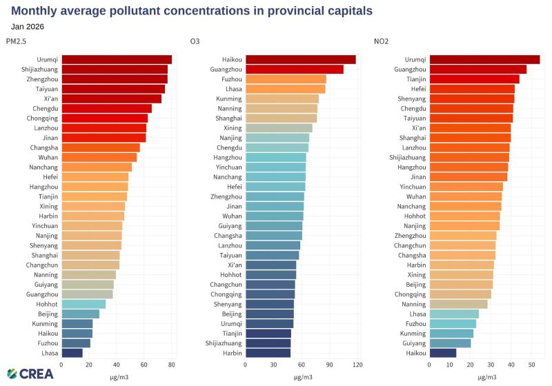 💨 In January 2026, among Chinaʼs provincial capitals: